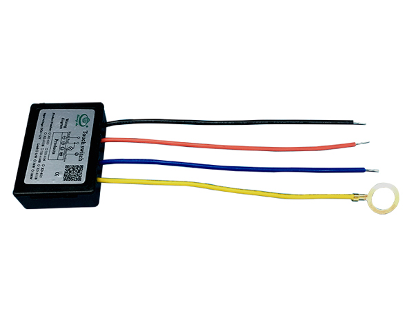 接线方式:红线和黑线接“+、-”DC:6-12V输入,红线再与兰线接灯具,黄线是触摸信号线接触摸金属体。 |